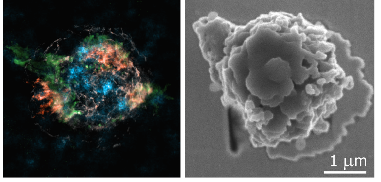 of emissions from the CasA supernova remnant (roughly 10 light years across), (Right) A SiC-X presolar stardust grain. The difference in size? Almost 23 orders of magnitude! Yet, nuclear reactions govern them both.